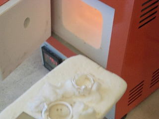 ワークショップの様子 白い粘土を柔らかいうちに形づくり、ドライヤー乾燥後、 電気炉で約5分焼成 ワイヤーブラシで磨いたら、純銀アクセサリーの完成です! |